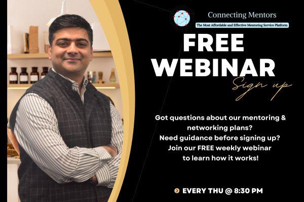 Got questions about our mentoring & networking plans? Need guidance before signing up? Join our FREE weekly webinar every Thursday at 8:30 PM to learn how it works!